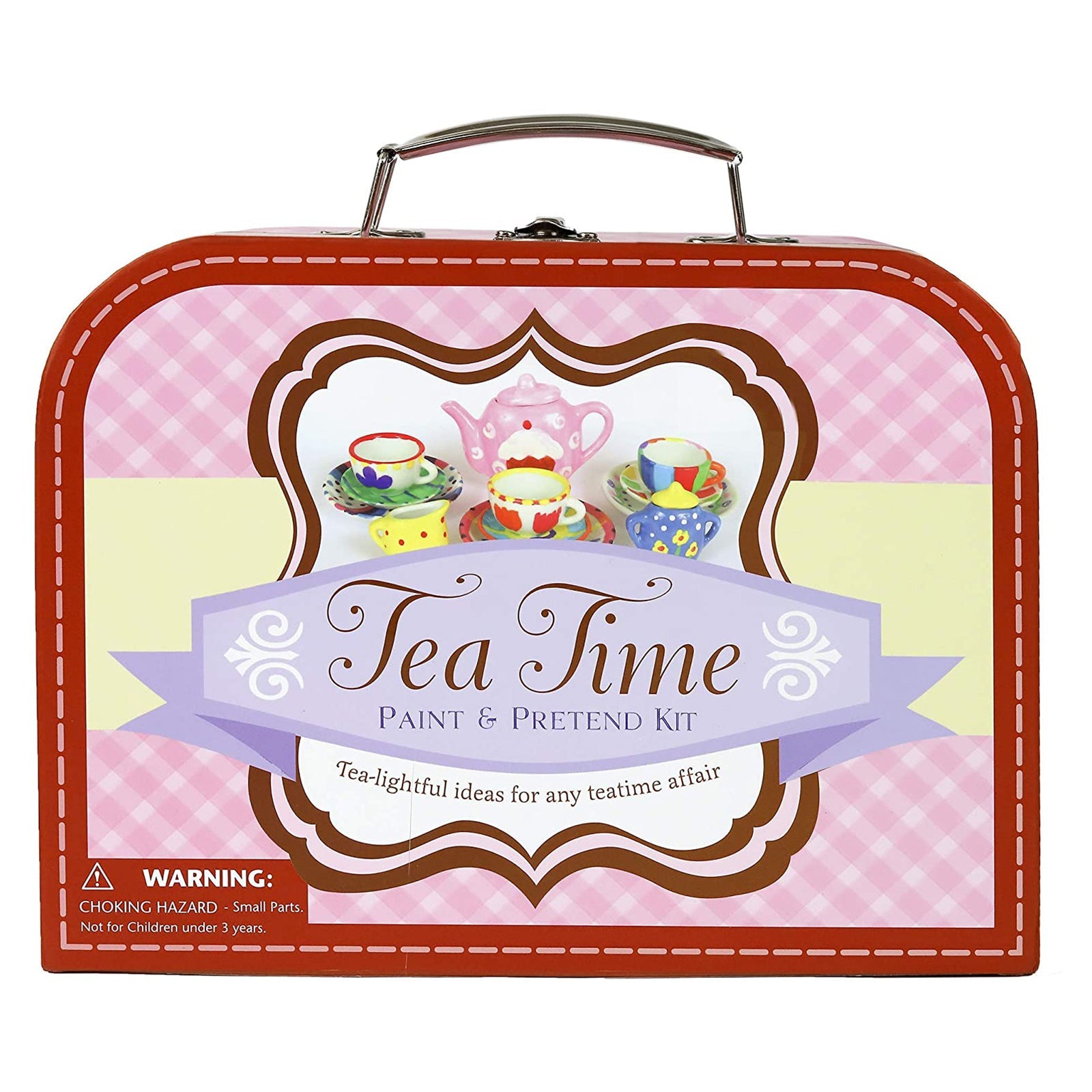 This kit comes with 17-piece mini Tea set, 10 paints in assorted colors, 1 paintbrush, and a 56-page book of instructions and ideas.